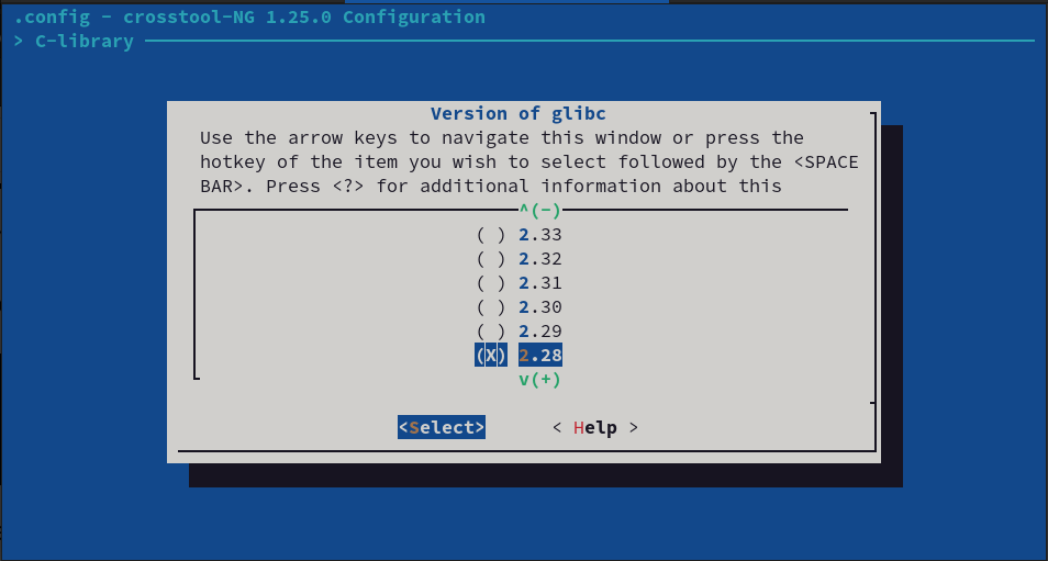 In C-library -> Version of glibc, choose 2.28.