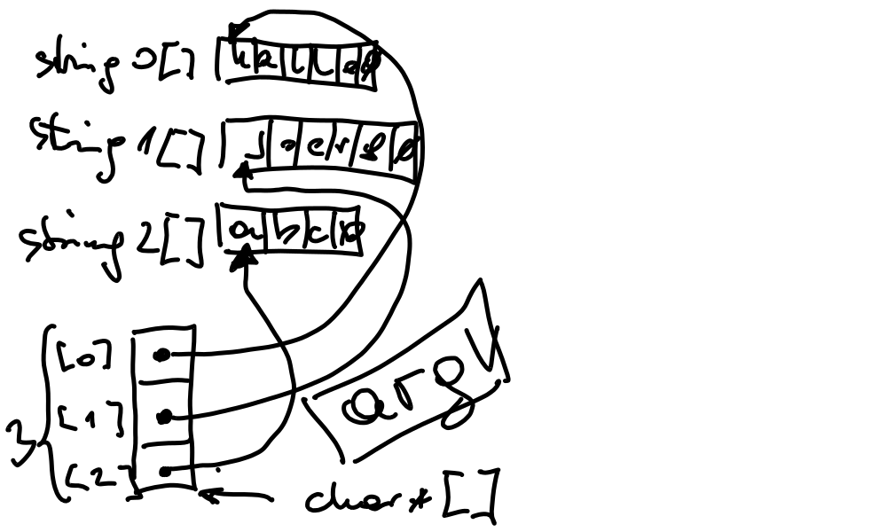 argv; that double pointer thing.Compose an array like