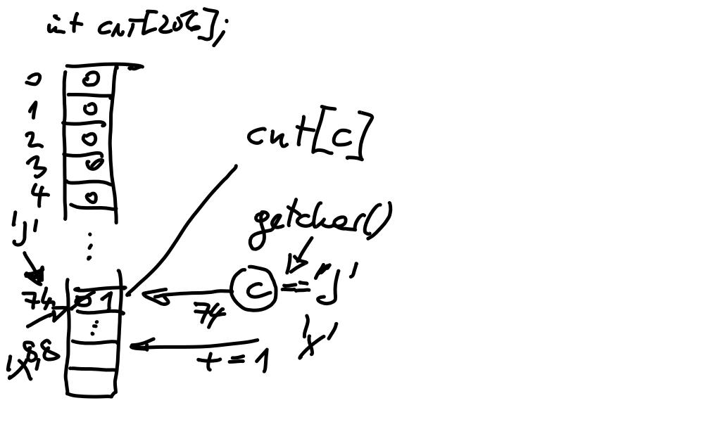 while ((c = getchar()) != EOF) { ... }: assignment has a value (DRY: don’t repeat yourself)Arrays (and everything else) in C are not range checked ⟶ input needs verification