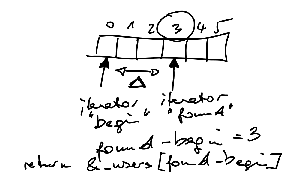 UserDB::search_by_lastname()… this is how to convert aconst_iteratorto a pointer: