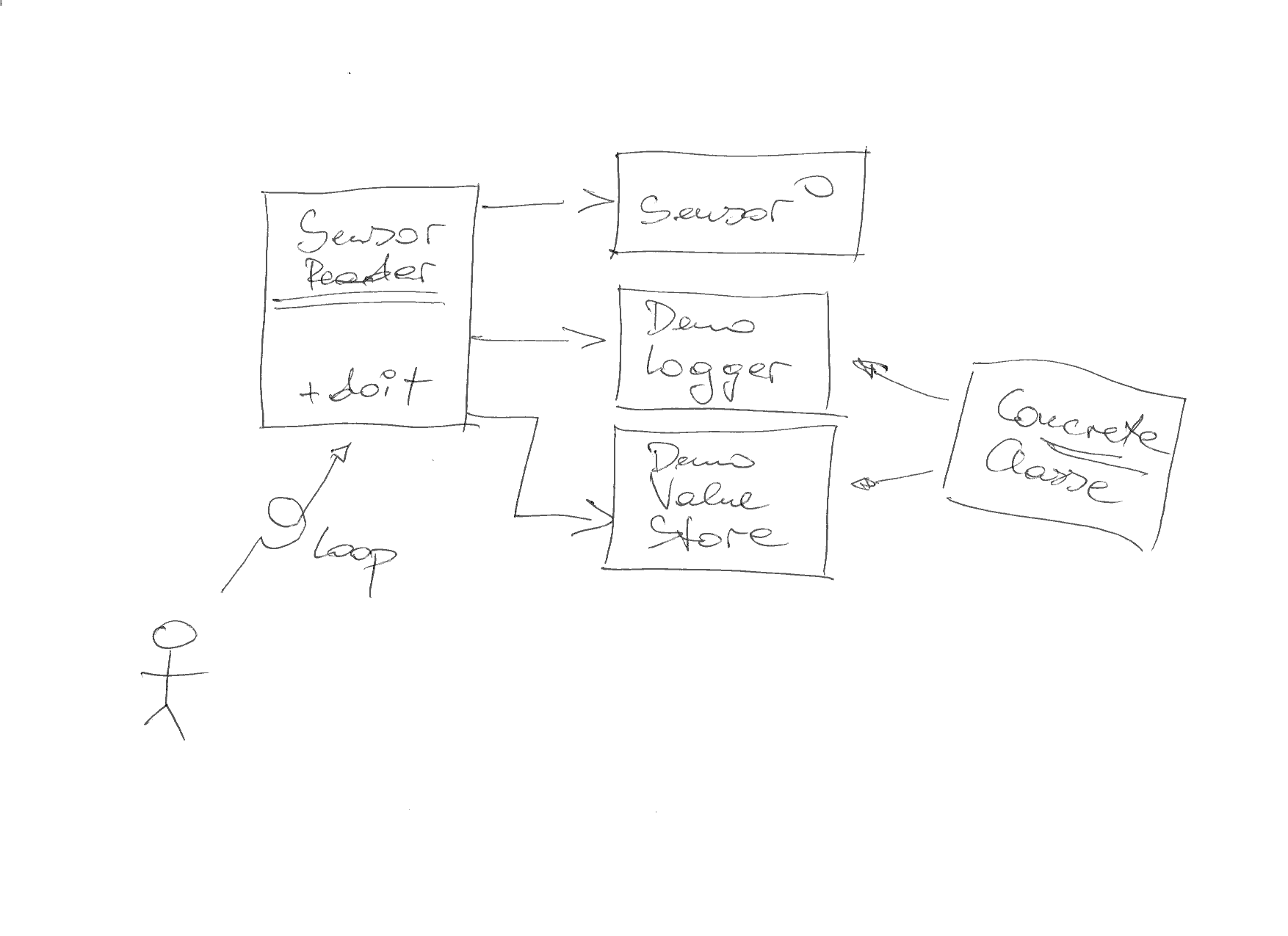 SensorReaderDepending on concrete classes (logging, value store)